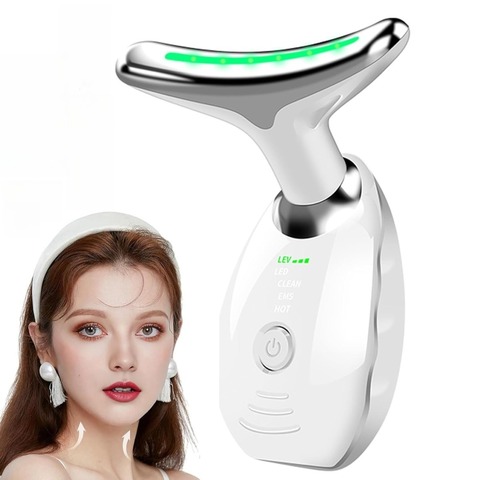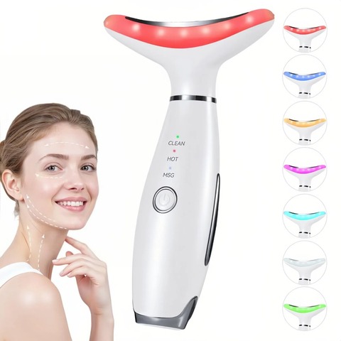 Portable Skin Tightener Facial Massager with LED 3 Color Light Heating Vibration for Home Use Anti-Aging